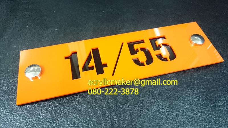 ป้ายบ้านเลขที่อครีลิค พื้นสีส้ม อักษรสีดำ